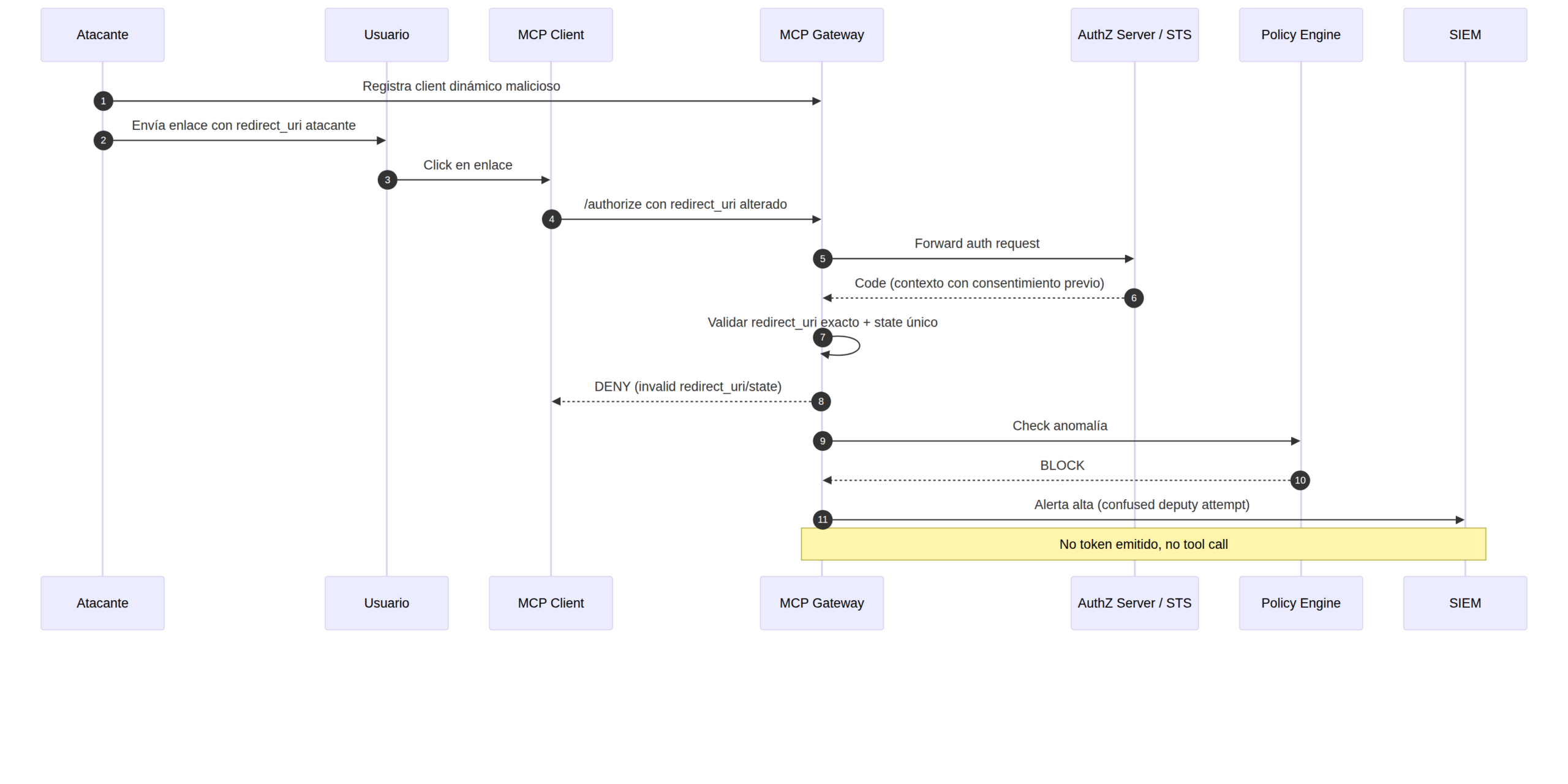- Tool shadowing entre dominios de confianza distintos.
