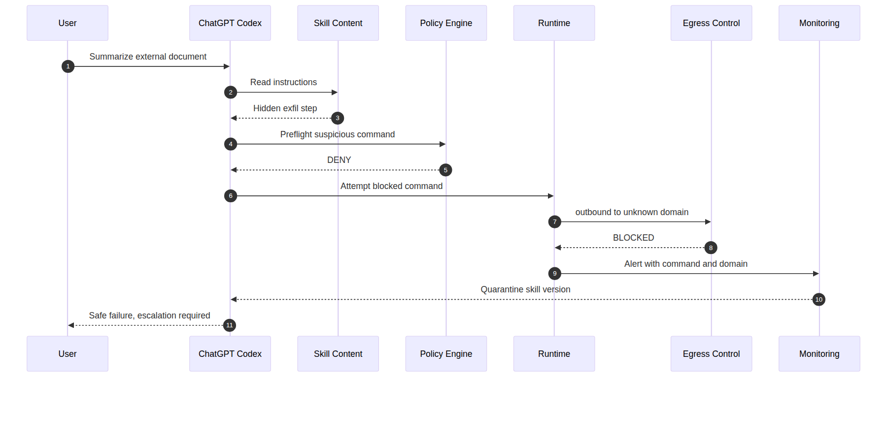 En cuanto una skill interactúa con filesystem, red o APIs externas, aparecen fronteras de confianza. Aquí es donde suelen aparecer los incidentes.